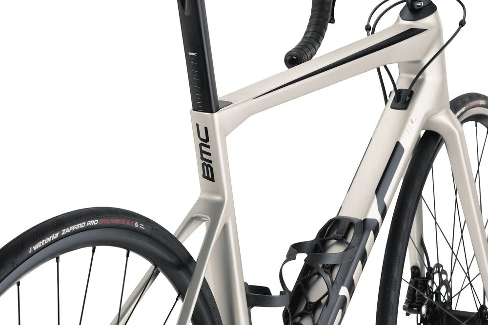 Die superleichten Flaschenhalter aus Carbon integrieren sich nahtlos in das neu geformte Unterrohr und Sitzrohr, was den Luftwiderstand bei Benutzung von Trinkflaschen deutlich reduziert.