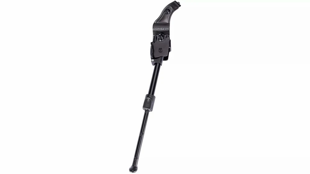 Der Fahrradständer CONTEC „CKS-200“ ist eine professionelle Lösung mit hoher Schutzwirkung. Das kleine Bauteil in Schwarz erfüllt eine wichtige Schutzfunktion und ist für eine Laufradgröße von 16 bis 24″ verstellbar. Der klassische Hinterbauständer punktet mit rostfreiem Alu und einem stabilen Kunststofffuß.