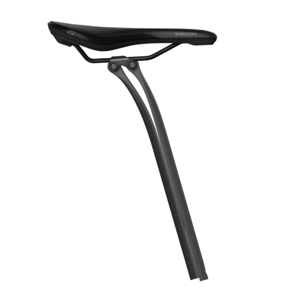 Einzigartiger Komfort, leicht, ästhetisch-modern: Die Ergon-Blattfeder-Sattelstütze in der Setback-Variante revolutioniert mit ihrem genialen Funktionsprinzip den Sitzkomfort auf Rennrad, Allroad- und Gravelbike. Rauer Untergrund und Schotter werden von den beiden VCLS-Blattfedern aus Carbonfaser-Composite glattgebügelt, dabei bleibt die Sattelneigung durch die Parallelverschiebung der beiden Blattfedern und den schwimmend gelagerten Flip Head stets unverändert. Die straffen, hochsensibel abgestimmten Blattfedern arbeiten derart definiert, dass sie die volle Rennrad-Performance nicht beeinträchtigen. Das Setback-Modell bietet einen Nachsitz von 25 mm.