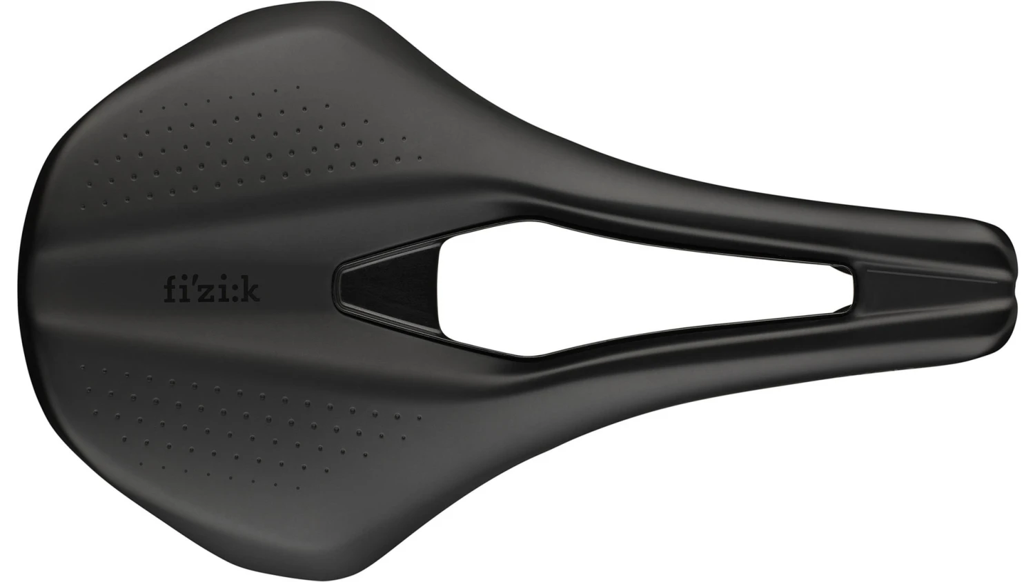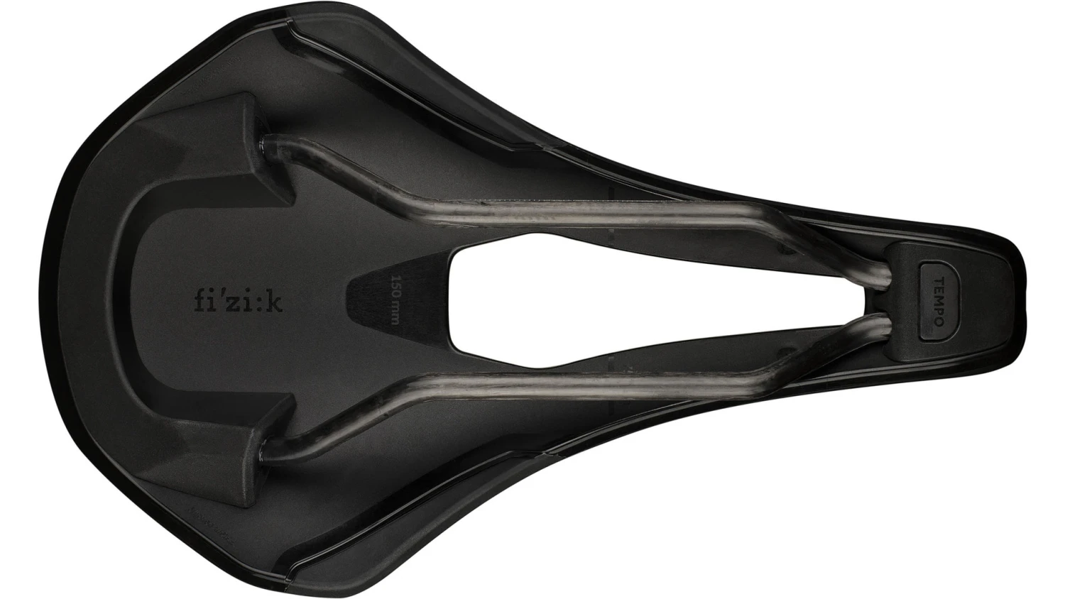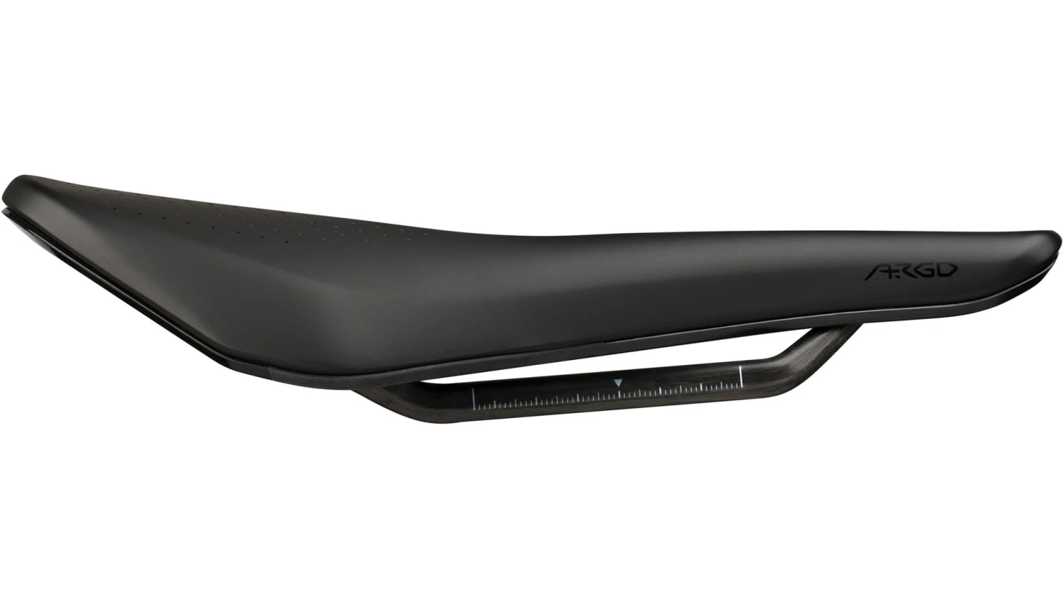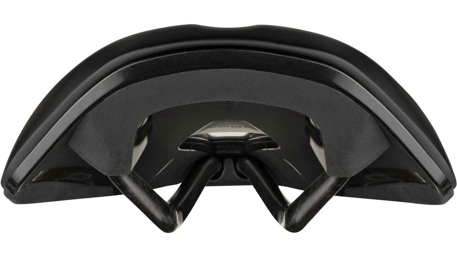 Ein Sattel für den Ausdauersport, der durch sein kurzes Design und die großzügige Unterstützung der Sitzbeinhöcker die Stabilität fördert, sowie ein hochsteifes Carbon-Gestell (R1).