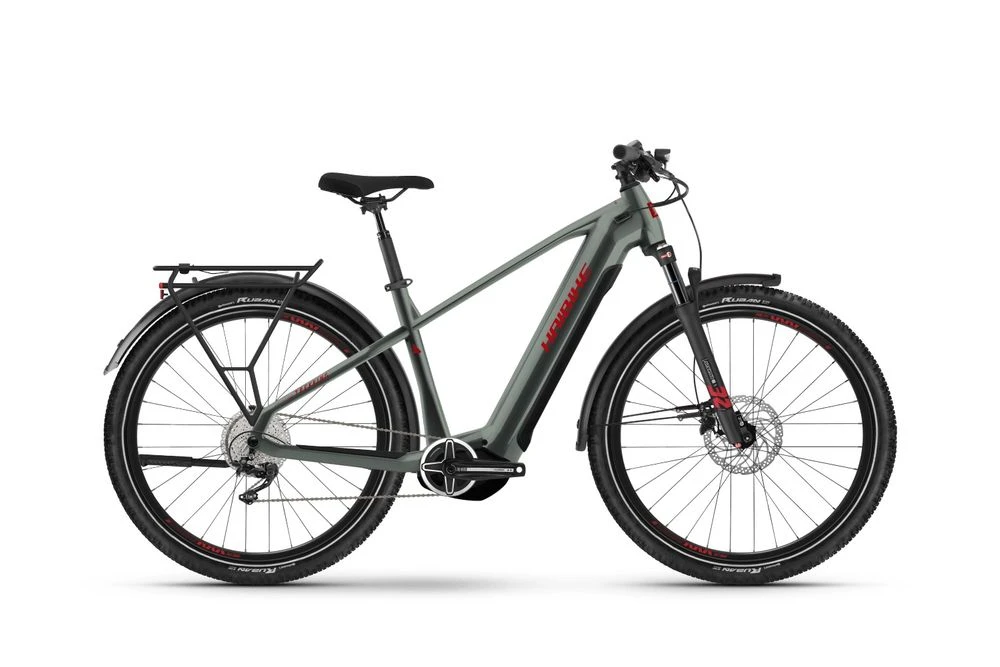 Das Haibike TREKKING 5 HIGH ist ein echter Allrounder, mit dem du alles machen kannst: zur Arbeit fahren, eine Feierabendrunde drehen oder eine mehrtägige Tour mit Gepäck starten. Was auch immer du vorhast: Der neue Yamaha PW-S2 Motor bietet dir die passende Unterstützung und mit 720 Wh Akkuleistung genügend Reserven auch für längere Touren. Zuverlässige Schalt- und Bremskomponenten von Shimano sowie 100 mm Federweg vorne sorgen für Sicherheit und Komfort. Und mit den grobstolligen Reifen bist du auch für leichte Offroad-Einsätze bestens gewappnet. Die StVZO-konforme Ausstattung bestehend aus Gepäckträger, Beleuchtung und Schutzblechen runden dieses vielseitige Trekking eBike ab.