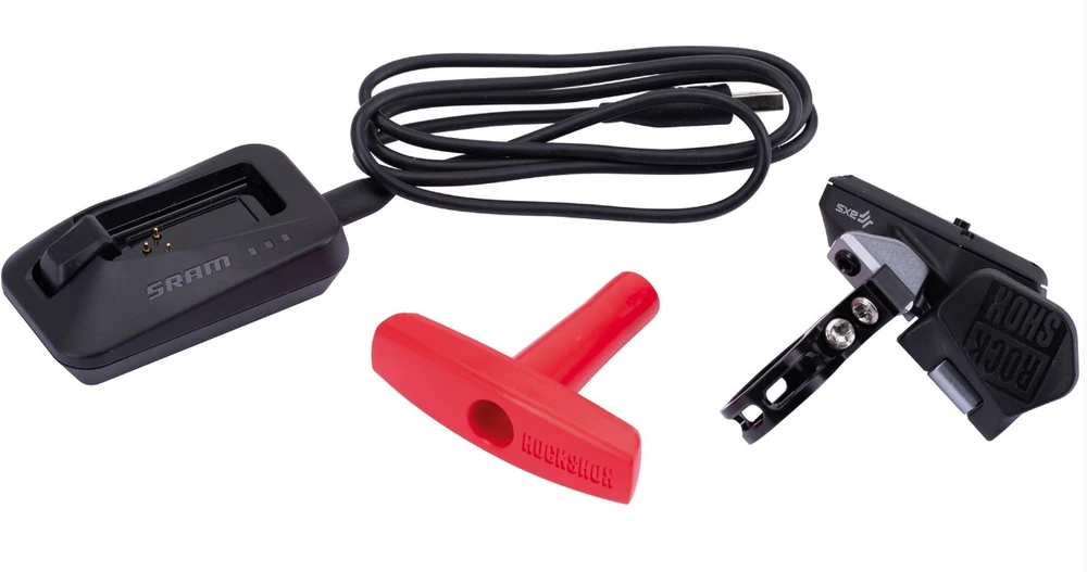 - Im Lieferumfang: RockShox AXS™-Controller, SRAM-Akku und Ladestation