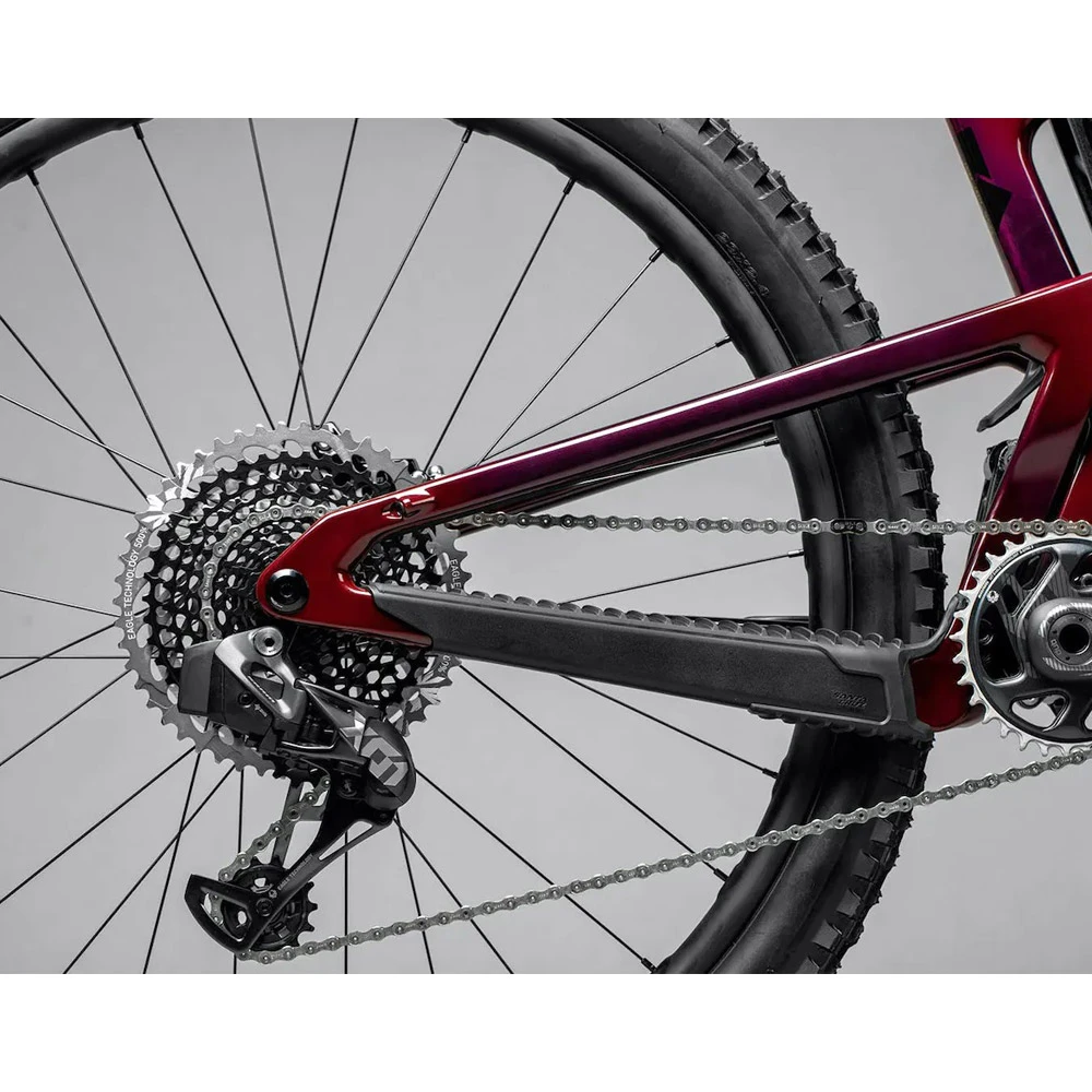 - Größenabhängige Geometrie: Die Kettenstrebenlänge und der Sitzwinkel sind auf die Rahmengröße abgestimmt, sodass jeder Fahrer, unabhängig von seiner Körpergröße, die gleiche ausgewogene Geometrie erhält.