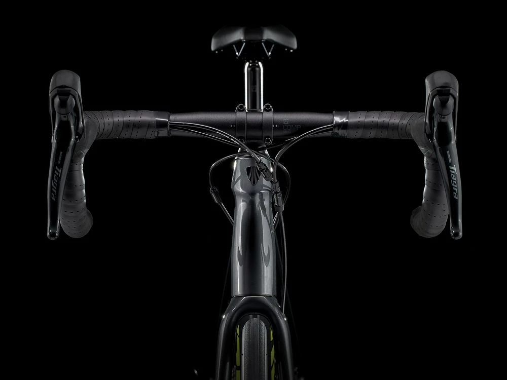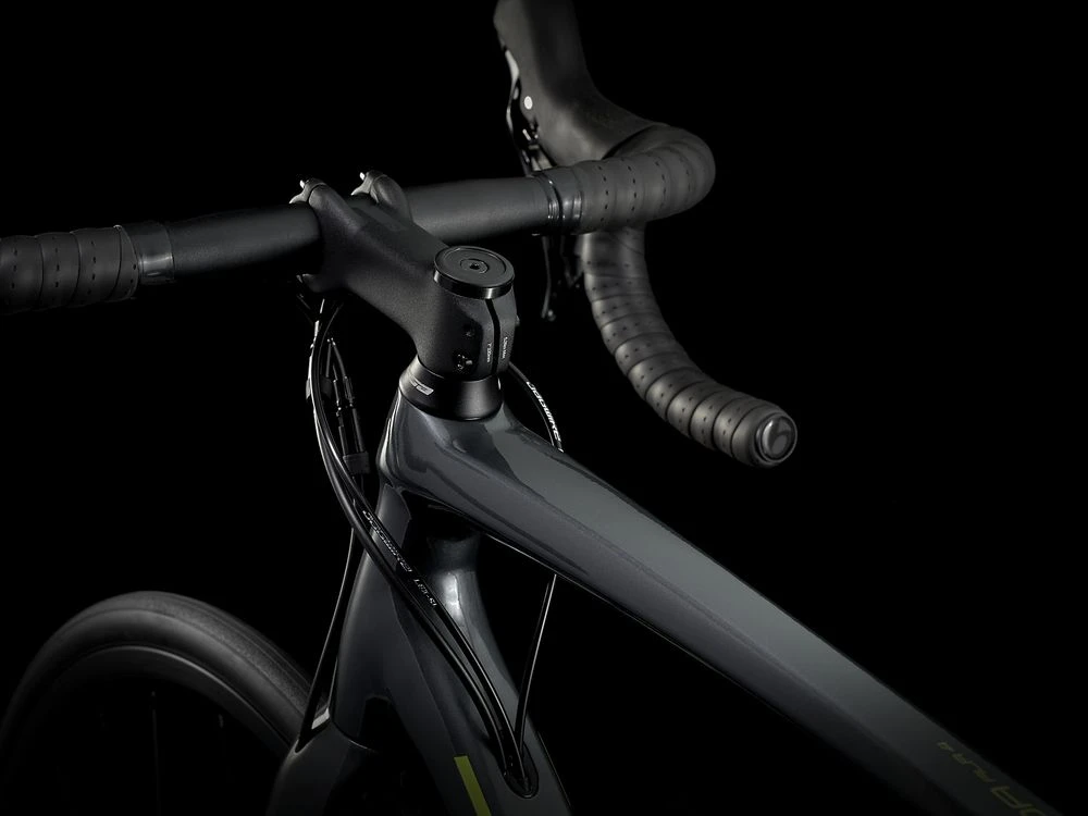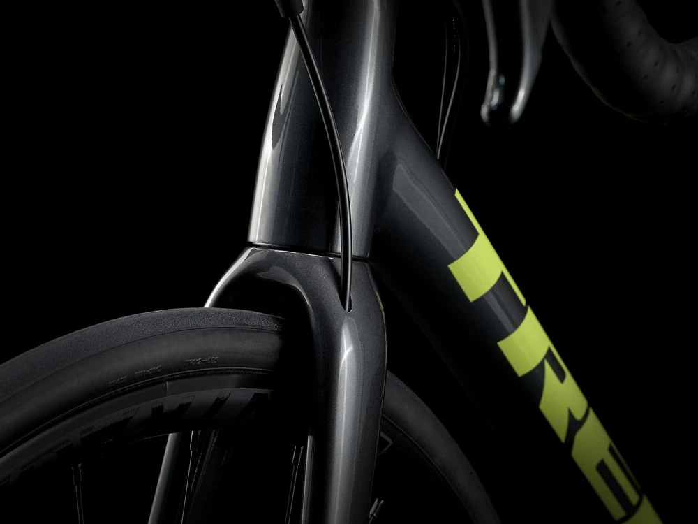 Mit der Ausstattung bekommst du Einen leichten Rahmen aus 300 Series Alpha Aluminium mit speziell geformten Rohren und Invisible Weld Technology, der es in Sachen Optik und Handling mit teureren Carbonmodellen aufnehmen kann, einen Shimano Tiagra 2×10-Antrieb, eine Émonda-Carbongabel, Bontrager Affinity Tubeless Ready-Laufräder, kraftvoll zupackende hydraulische Flat Mount-Scheibenbremsen und innen verlegte Züge in Rahmen und Gabel.