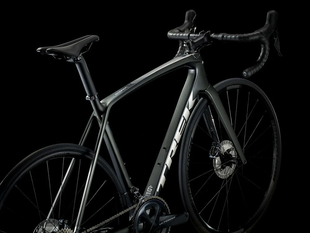 Mit der Ausstattung erhältst du einen leichten und aerodynamischen Rahmen samt Gabel aus 500 Series OCLV Carbon, eine komplette Shimano Ultegra 2×11-Gruppe und hochwertige Bontrager Paradigm Tubeless Ready-Laufräder.