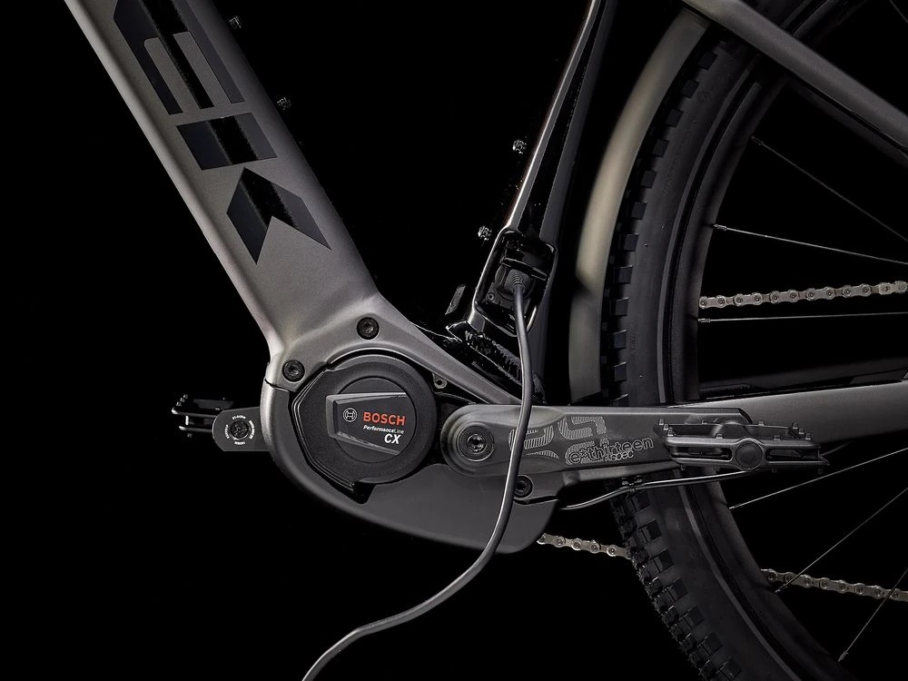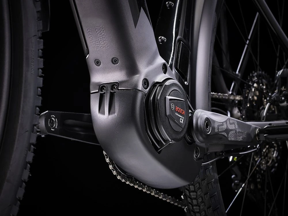 Ein robuster Aluminiumrahmen mit ausdauerndem 625 WH starken Akku, der für eine elegante Optik und optimalen Schutz auf dem Trail vollständig integriert ist, einen Bosch Performance CX Smart System Motor zur Tretunterstützung bis 25 km/h und einen Bosch Kiox-Controller sorgen für die nötige Unterstützung.